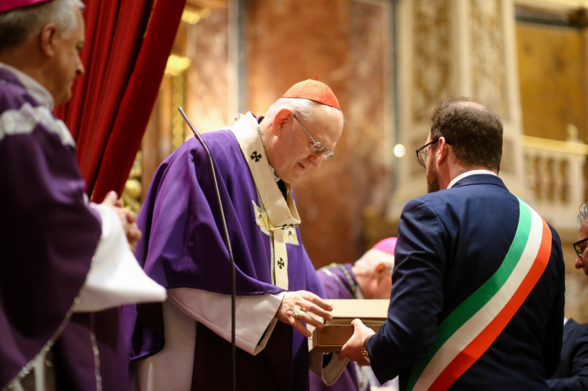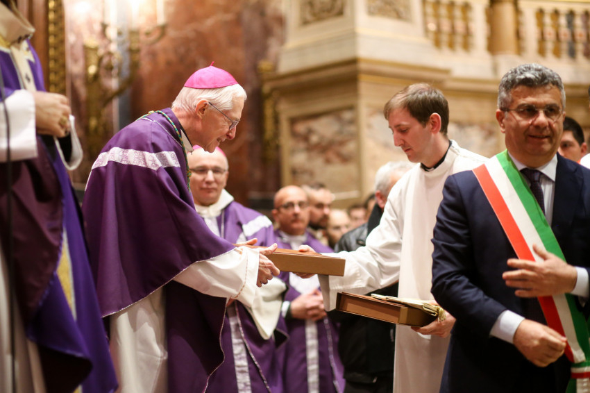 Ezután Norcia, Subiaco és Cassino polgármesterei Erdő Péter bíborosnak és Michael August Blume pápai nunciusnak átadták ajándékukat: Szent Benedek Regulájának egy-egy példányát.