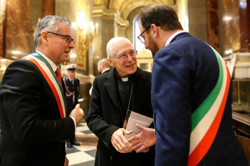 Az olasz nyelvű szentmise végén Michael August Blume pápai nuncius szólt a liturgia résztvevőihöz, köszöntötte a béke lángjának zarándokait. Ez a láng nem akármilyen fény szimbóluma, hanem Krisztus fényéé és szeretetéé, amit el kell vinni a testvéreinkhez, különösen a szegényekhez – hangsúlyozta. Hozzátette, hogy a Szent István-bazilika is egy olyan szent emlékét őrzi, aki a békéért és a népek egységéért „imádkozott és dolgozott”. A nuncius végül azért fohászkodott, hogy Krisztus Lelke kísérjen bennünket életünk minden útján.