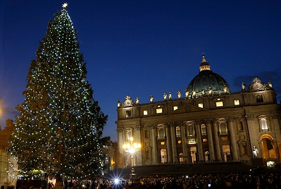A karácsonyi díszbe öltöző fenyőfa a calabriai Vibo Valentia megyéből érkezik az örök városba. A fát helikopteren szállítják el az erdőből, majd egy kamion viszi tovább Rómába december 4-én éjjel. Az idei karácsonyfa 25 és fél méter magas, alul tíz méter széles, súlya körülbelül nyolcvan mázsa. Különlegessége, hogy ikerfa lévén két törzse van. A karácsonyfa díszkivilágítását december 19-én délután fél 5-kor kapcsolják be a két ajándékozó intézmény delegációjának jelenlétében.