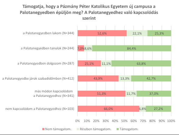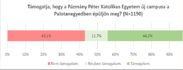 Az első és talán legfontosabb, hogy a kitöltők között többen támogatják az új egyetemi campus megépülését a Palotanegyedben, mint utasítják el: