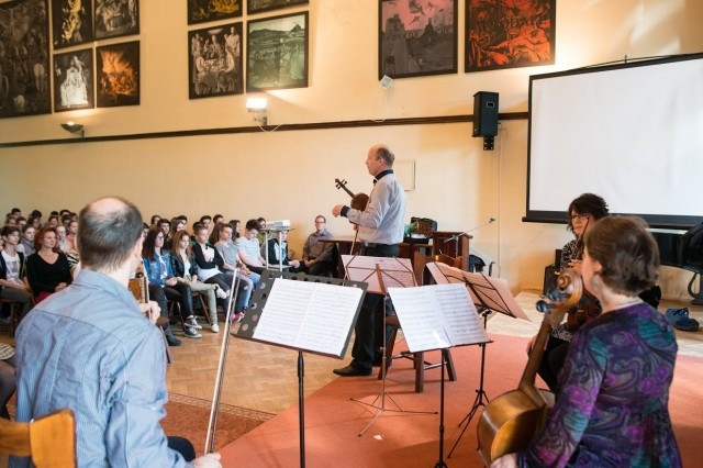 Nem túlzás azt állítani, hogy a vonósnégyes műfajának Haydn a megteremtője – az a Joseph Haydn, akit a szimfóniák atyjának is tekintenek. „A korhű, autentikus, bélhúros hangszereken megszólaltatott régizenei darabok egészen más hangzást adnak, mint a fémhúrozással előadottak” — tudhatták meg a koncert résztvevői Kalló Zsolttól, aki negyedszázada vezeti a harmincöt éve létrejött zenekart.