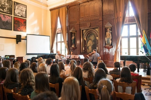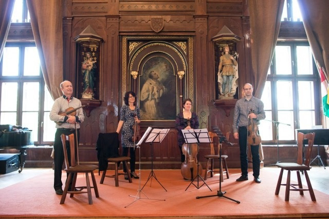 A Capella Savaria kamarazenekar művészei: Kalló Zsolt – első hegedű, Szőke Beáta – másod hegedű, Rácz Gábor – brácsa, Pálkövi Ágnes - cselló