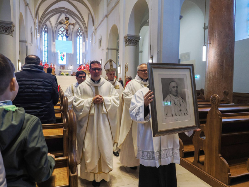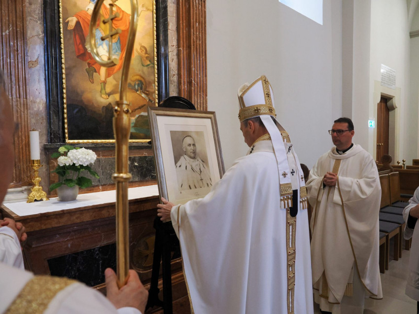 A híveket pedig arra kérte, hogy imáikban emlékezzenek meg hazánk utolsó hercegprímásáról, akit 80 évvel ezelőtt szenteltek fel veszprémi püspöknek. Az ő alakja az érsekség munkásságára, oktatási és hitéletet támogató tevékenységére is felhívja a figyelmet az évforduló kapcsán. Ennek megfelelően Udvardy György érsek elhelyezte a főszékesegyházban a korábbi veszprémi püspök, Mindszenty József bíboros arcképét.