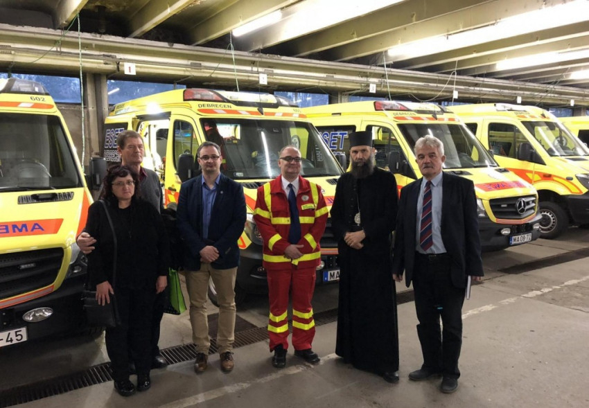 Kocsis Fülöp érsek-metropolita és Nemes József karnagy átadta a Hajdúdorogi Főegyházmegye 1 millió forintos felajánlásából és a Lautitia kóruscsalád adventi koncertjén összegyűlt több mint 400 ezer forintos adományból vásárolt eszközöket az Országos Mentőszolgálat debreceni állomásán.