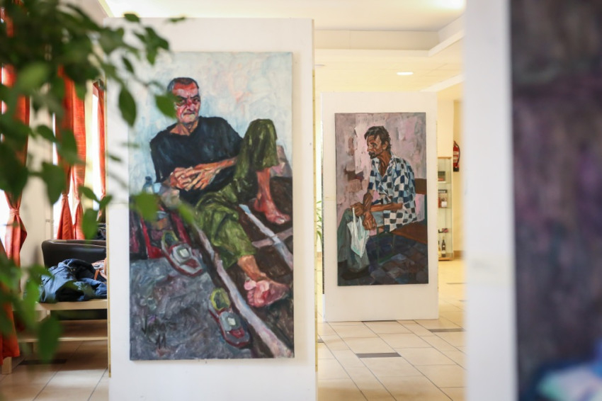 Ebéd után csoportfoglalkozásokkal, kvízjátékkal folytatódott a rendezvény, majd a Máltai Szeretetszolgálat épületének emeletén festménykiállítást nyitottak meg. Juhász Dávid Csavargók című sorozatának olajfestményei „az élettől megmart emberi sorsokat” mutatnak be, ahogyan a művész fogalmazott. Elmondta, hogy tanárként tíz éven keresztül járt tanítványaival Budapest utcáira, hogy ételt vigyenek a hajléktalanoknak, ismeri az élettörténetét a képein szereplőknek.