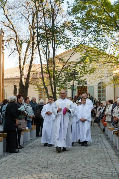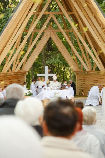 A szentmisén, amit az egyházmegye megjelent papságával együtt mutatott be Spányi Antal, a püspök megáldotta a kegyhelyet. Az oltáron elhelyezték az üldözött iraki keresztényektől kapott keresztet, amely egy felrobbantott katolikus templomból származik.