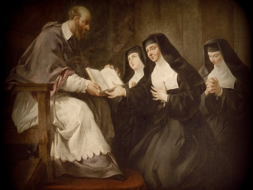 Lelkivezetőjét, Szalézi Szent Ferencet egy lelkigyakorlaton ismerte meg. Ferenc munkatársaként az elesetteket szolgálta: betegek ápolásával, szegények gondozásával, segítésével foglalkozott. Együtt alapítottak Annecy-ben egy betegápoló szerzetesrendet: a vizitációs nővérek rendjét, melyet később Chantal Franciska vezetett. Később Páli Szent Vince kísérte lelki útján. Franciskának nagy szerepe volt Szalézi Ferenc szenttéavatásának előkészítésében.