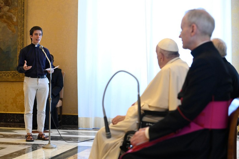 Azt javasolta a fiataloknak, hogy tanulják meg az Istenre hagyatkozás imáját – amely Charles de Foucauld írásaiból származik –, és gyakran elmélkedjenek róla, különösen a döntések és az élet keresztjeinek vállalása pillanataiban. „Ily módon beléphettek az Egyház evangéliumi dinamikájába” – mutatott rá a pápa.