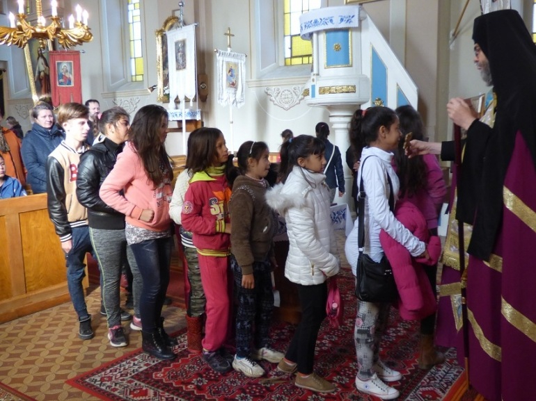 A találkozó a Magyarok Nagyasszonya-templomban elénekelt paraklisz imádsággal (könyörgő ájtatosság az Istenszülő Szűz Máriához – a szerk.) kezdődött, majd a gyerekek átvonultak a görögkatolikus általános iskolába, a hittanverseny helyszínére.
