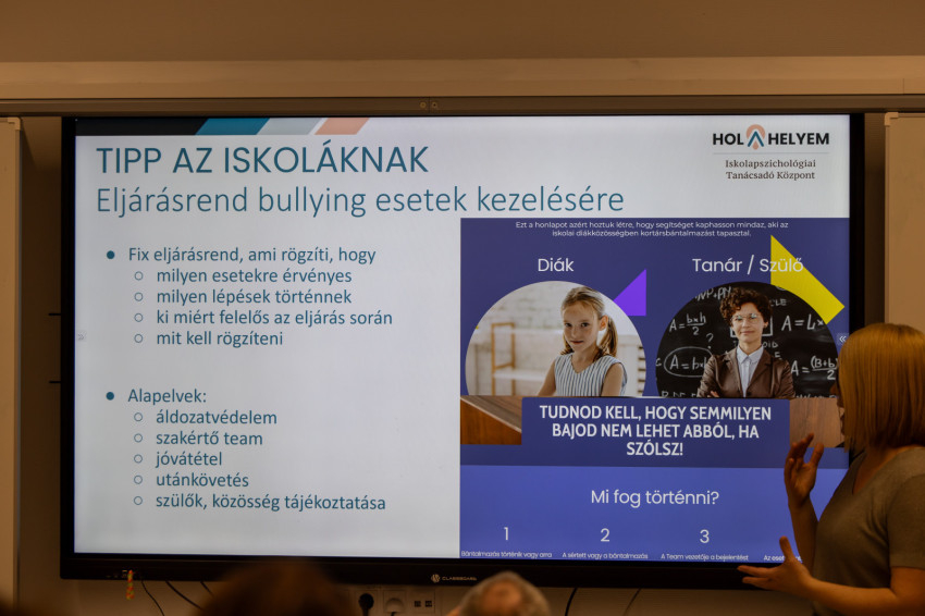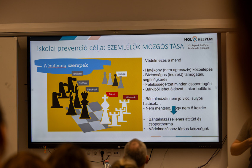 Az előadó kitért arra, hogy 10 éve egy magyarországi felmérés során kiderült, az áldozatok a gyerekek 10-15 százalékát teszik ki, de csupán 10-ből két osztályban nincs bullying. Nemcsak az áldozatoknak, hanem a többieknek is szükségük van arra, hogy megszűnjön a bántalmazás.