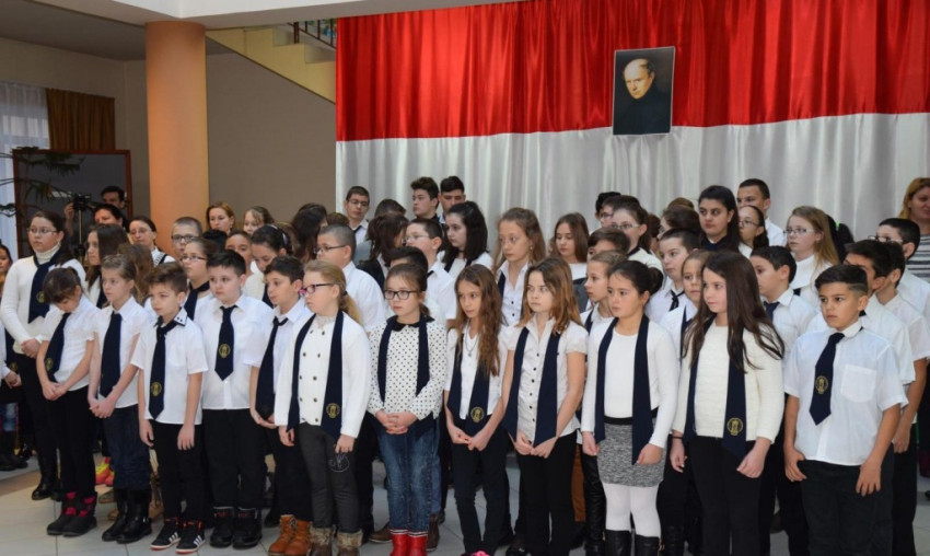 A diákok és tanárok az iskola aulájában gyűltek össze, ahol a bevezető gondolatokat követően közösen szavalt az iskola. Először a Himnusz sorait zengték vissza a falak, majd a magyar szó összetartó erejéről szóló Wass Albert-verset, A láthatatlan lobogó című költeményt szavalták.