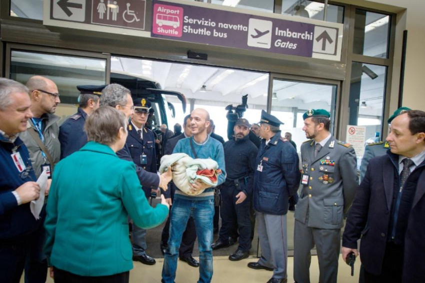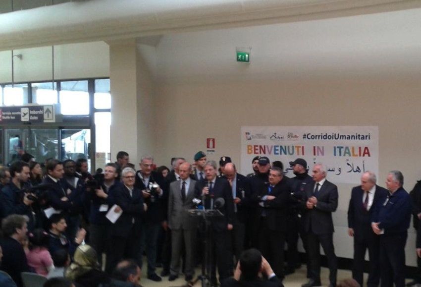 A kezdeményező egyházi közösségek képviselői mellett Paolo Gentiloni olasz külügyminiszter várta a repülőtéren a menekülteket. Azon az útvonalon érkeztek, amely Európában az első humanitárius folyosó, vagyis az első kísérlet arra, hogy kimentsék a civileket a szíriai háború poklából, elkerülve, hogy életüket kockáztatva, embercsempészek prédájaként a tengeren keljenek át a kontinens felé.