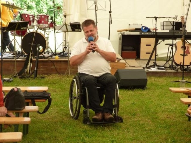 Holló András gerince nyolc évvel ezelőtt egy balesetben sérült meg, aminek következményeként kerekesszékbe kényszerült, de ez nem gátolja abban, hogy társastáncot tanítson ma is.