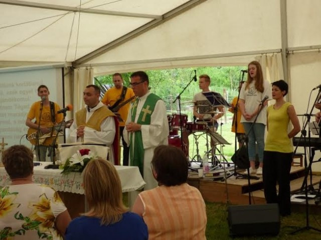 A tanúságtételek után szabadtéri szentmisére került sor, amelyen a bensőséges hangulatot tovább fokozták a dicsőítő csoport által énekelt zsoltárok.