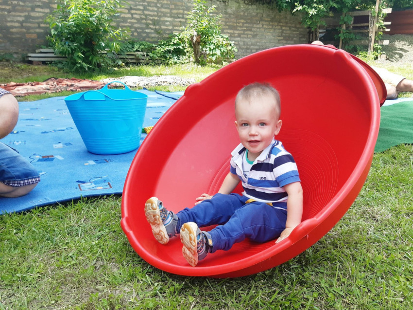 Ezt követően a plébánia udvarán „kerekítő baba-mama” foglalkozáson vehettek részt a kisgyerekek szüleikkel, nagyszüleikkel.