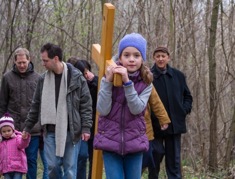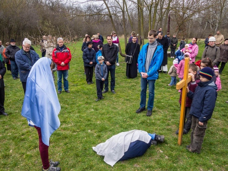 Volt olyan család, amelyből három generáció is jelen volt. Az állomásokat a gyermekek jelenítették meg a tanösvény egyik tisztásán, a szülők olvasták fel az elmélkedéseket. A főpásztor záró szavai és áldása után a családok csendben vonultak el az imádságos elmélkedés helyszínéről.