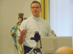 A lelki nap előadással folytatódott, melynek vendége Fábry Kornél, Kaposfüred plébánosa, az Emmánuel közösség tagja volt. Fábry Kornél személyes istenélményét megosztva beszélt Isten országának földi építéséről, s abban az adventi előkészület jelentőségéről, formáiról, tippeket is adva egyúttal a családoknak, hogyan lehet méltóképpen előkészülni a szülőknek gyermekeikkel a közelgő ünnepre. Bevezetőjében a Forrás együttes Egy szó kiált című dalát adta elő gitárkísérettel, mely Izajás próféta könyvének szavai alapján az Úr útjának készítésére buzdít. Majd a hit és a bizalom közös gyökerűségét állította középpontba szavaiban, mely az adventi várakozásnak is fő alkotóeleme. Mind mondta, a klasszikus görög nyelv e két fogalmat egyazon szóval fejezi ki (pisztisz – hinni, bízni), ezzel is utalva elválaszthatatlanságukra.