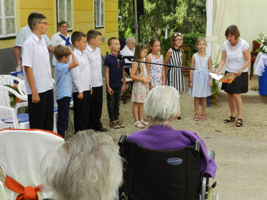 A köszöntések és köszönetek egymást érték; a szeretetszolgálat otthonainak vezetői egyenként búcsúztak Lőrincz Jánosnétól, méltatták az együtt töltött munkás és ünnepi napok jelentőségét. Majd Verőce polgármestere, Grauszmann György bejelentette, hogy Verőce község képviselő-testülete Lőrincz Jánosnénak Verőcéért érdemérmet adományoz Szent István ünnepén, a település szépkorú közösségéért, a Migazzi Otthon lakóiért végzett fáradhatatlan és szeretetteljes szolgálatáért. Felolvasták Rétvári Bence parlamenti államtitkár köszöntőlevelét is. Ez követően a Migazzi Otthon munkatársai mondtak köszönetet búcsúzó vezetőjüknek. A dolgozók elismerésként feladták rá Szent Erzsébet rózsás kötényét.