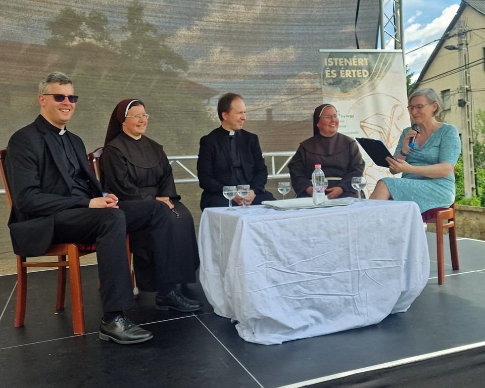 Madocsai Bea kerekasztal-beszélgetést folytatott a hivatásról Mohos Gábor püspökkel, Hajós M. Ágnes és Takács M. Klarissza ferences szegénygondozó nővérekkel, valamint a házigazdával, Wilheim Péter plébánossal.