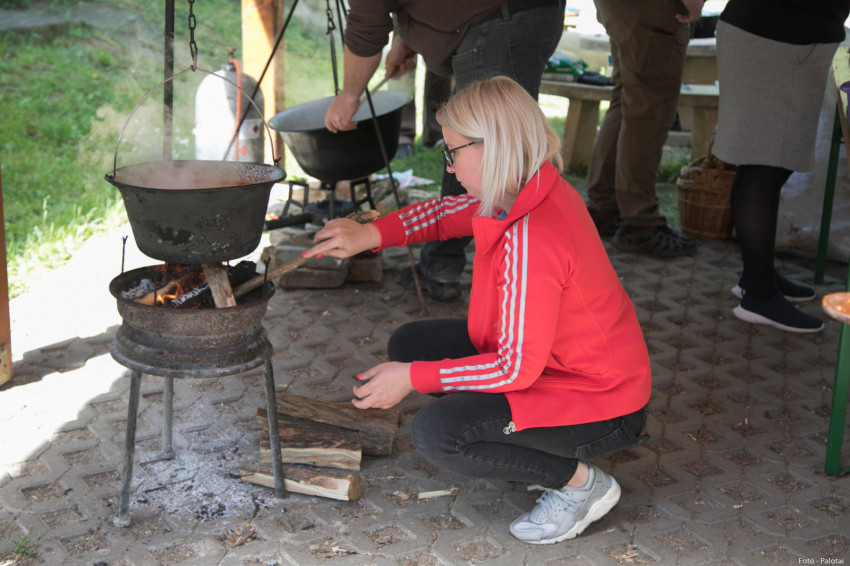 A reggeltől folyó munka újból lehetőséget teremtett arra, hogy viccelődjünk, hogy egy jót beszélgessünk, ellessük a bográcsozáshoz kötődő családi fortélyokat.