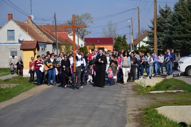 Stációról stációra más-más család vitte az Úr keresztjét, és olvasta fel az egyes állomásoknál a rövid elmélkedéseket.