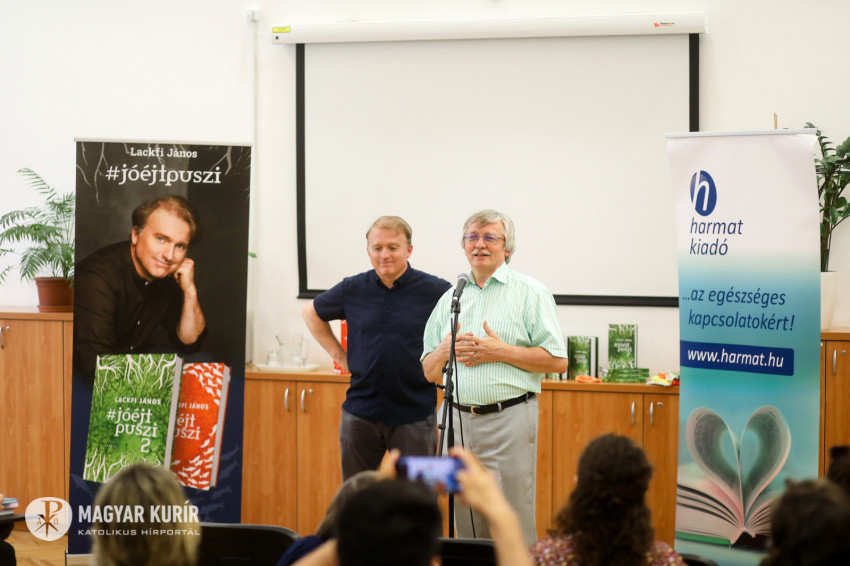„Nagy titok az ihlet, melyből a másik embert megszólító alkotás születhet. De még ennél is nagyobb rejtély, amikor az Isten szólít meg valakit egy másik emberen keresztül. Pünkösd misztériuma, hogy képesek lehetünk úgy megszólítani valakit, hogy abból a mondatból üzenet lesz” – ezzel a gondolattal nyitotta meg a könyvbemutatót Herjeczki Kornél, a Harmat Kiadó igazgatója. A járványügyi korlátozások miatt az utóbbi időszakban tovább növekedett a közösségi média aktív felhasználóinak száma. Ráadásul olyan tartalmak is váratlan népszerűségre tettek szert e platformokon, amelyek eddig elsősorban a hagyományos, offline csatornákra voltak jellemzőek. Lackfi János istenes verseit #jóéjtpuszi hashtag (metaadat, tárgyszó a közösségi médiában – a szerk.) alatt tette közzé az online térben. Bejegyzésként születtek, s végül eljutottak a nyomtatott formáig. A sikerkönyv második kötetének megjelenése kapcsán a szerző olvasott fel ezekből a versekből.