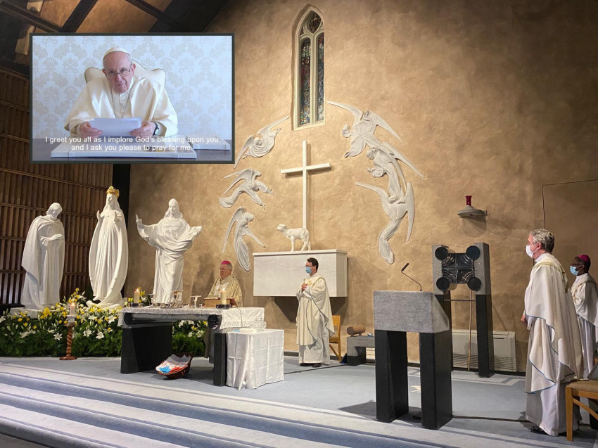 Az eucharisztikus titok, mely egyesít a feltámadott Úrral és az egymással való közösségben, legyen mindannyiunk számára támasz, hogy hűségesen megéljük hivatásunkat, hogy missziós tanítványok legyünk, miként az volt Szűz Mária. Ő védelmezzen és vigasztaljon minket. Üdvözöllek benneteket, és kérlek, imádkozzatok értem – zárta videoüzenetét Ferenc pápa.