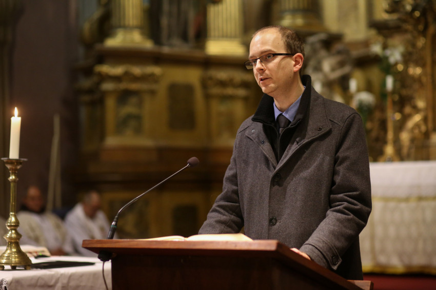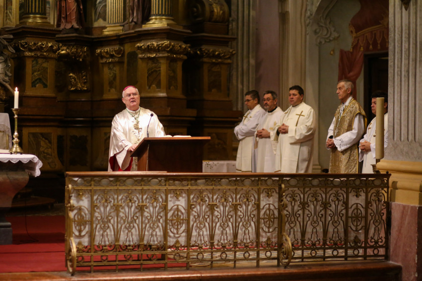 A János evangéliumából való szakasz arról szólt, hogy a vízen járó Jézus megnyugtatja a háborgó tengertől és Mesterük látványától megrémült tanítványait. Mindez megnyugvással tölthet el bennünket is, az Úr soha nem hagy el minket, az Egyház hajója az övé, nem hagyja elsüllyedni – fogalmazott a külföldi magyarok lelkipásztori ellátásával megbízott segédpüspök, majd így buzdította a jelenlévőket: „Valljuk meg bátran a világnak, hogy Jézus Krisztus Isten Fia, Megváltó, és merítsünk reményt és erőt a vízen járó Szabadító tanítványaihoz intézett szavaiból: »Én vagyok, ne féljetek!«”