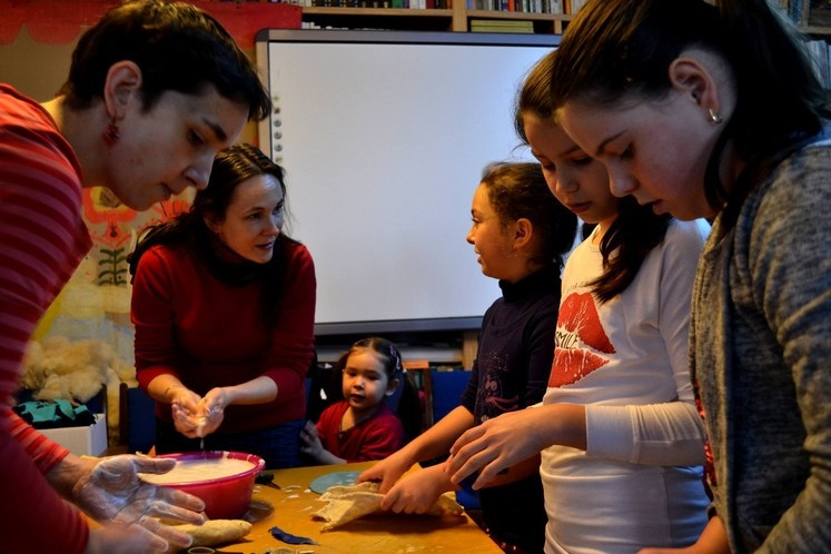 – Saját példát tudok mondani arra, hogyan is működik ez. Főleg nagyobb diákokkal lehet tapasztalni azt, hogy már nincs kedve, inkább fellép valamelyik közösségi oldalra, nézelődik, végtelen az internet adta tér, elragadja őket. De ha betérnek hozzánk, valahogy rávezetjük, hogy próbálják ki a festést, nemezelést, fafaragást, és ha előbb húzódozva is, de végül belekezdenek, és azt mondhatom örömmel, hogy majdnem minden alkalommal elragadja őket az alkotás, mosolyognak, dolgoznak, örülnek annak, ami elkészült. Ezért is gondolom, hogy a kézműveskedés, ha úgy műveljük, nem nevezhető pusztán tárgykészítésnek, mert benne vannak a készítő érzései, gondolatai, lelkisége, tehetsége is akár. Közösség-összerázó, -formáló ereje is van egy-egy ilyen alkalomnak. A régi fonós esteket is meg tudjuk idézni, amikor kézimunkázás közben énekeltek, anekdotáztak, beszélgettek, a mai szóhasználattal élve, minőségi időt töltöttek egymással az emberek. Ha nem is kimondottan, de mindenképpen van lelki vetülete a „csak” sima kézműves készülődésnek is. Fontosságát a közösségben látom, hogy nem otthon, magányosan tölti az egyén az idejét, hanem az a tevékenység, mint egy nagy családot, néhány órára összekovácsolja az egyéneket.