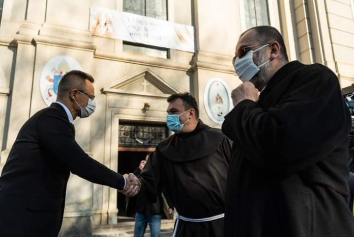 Csíksomlyón a kegytemplomot látogatta meg Szijjártó Péter, a kegyhely ferences őrei mellett a Csíkszeredában tárgyaló Kovács Gergely gyulafehérvári érsekkel is találkozott.
