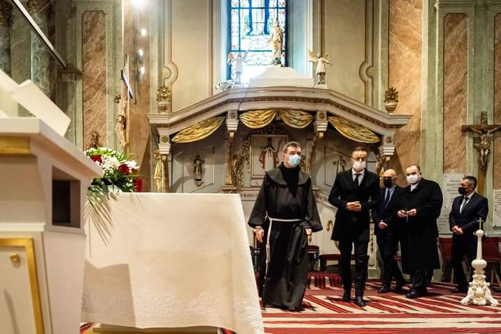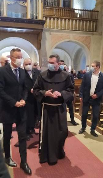 A kegyhelyen Urbán Erik tartományfőnök kalauzolta a magyar minisztert Bőjte Mihály házfőnök és Albert I. Leander ferences testvér kíséretében. Szijjártó Péter a kegyszoborhoz is felment, a Szűzanya lábainál imádkozott.
