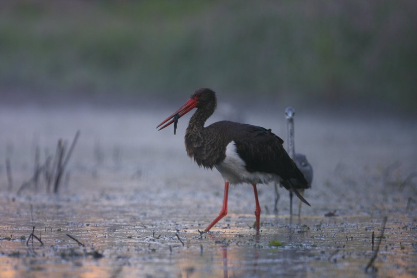– Nagyon. Gyönyörű képek, tényleg: ül egy sas egy gémeskúton, s mögötte húznak lassított képben a vadlibák. Igazából beraktuk, de kitérő volt az is. Nem értette az ember: mit keres itt? Így is lehet, hogy néha az az ember érzése, de egy történetre rá tudtuk húzni. Úgy viszont nagyon csapongó lett volna, hogy most miért van itt a fekete gólya, idáig nem is volt. Mert ha azt belerakjuk, akkor már bele kellett volna tenni a fészkelésüket is, amit szintén megcsináltunk, de tavaly nagyon rossz évük volt. Ezek a feketególya-fészkek gyönyörűek, hatalmasak, alacsonyan vannak, öreg tölgyfákra rakják; általában négy-öt aranyos kis pelyhes fióka áll bennük. De tavaly majdnem mindegyik fészekből kipusztultak a fiókák a viharok miatt. Szörnyű évük volt a gólyáknak: egyetlenegy fészket találtunk, ebben is csak egy fióka volt, és elég furcsán nézett ki, hogy egy hatalmas fészekben egyedül áll szegényke. Akkor úgy döntöttünk, hogy nem rakjuk be, és így az egész feketególya-szál kikerült.