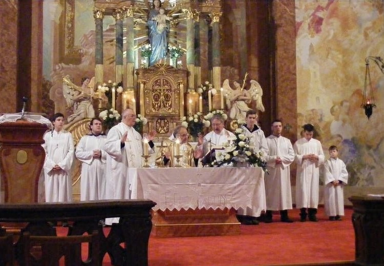 Az ünnepi szentmisén koncelebrált Kapui Jenő mosoni plébános és Németh László általános püspöki helynök. Közreműködött a mosoni templom Szent Cecília-kórusa.
