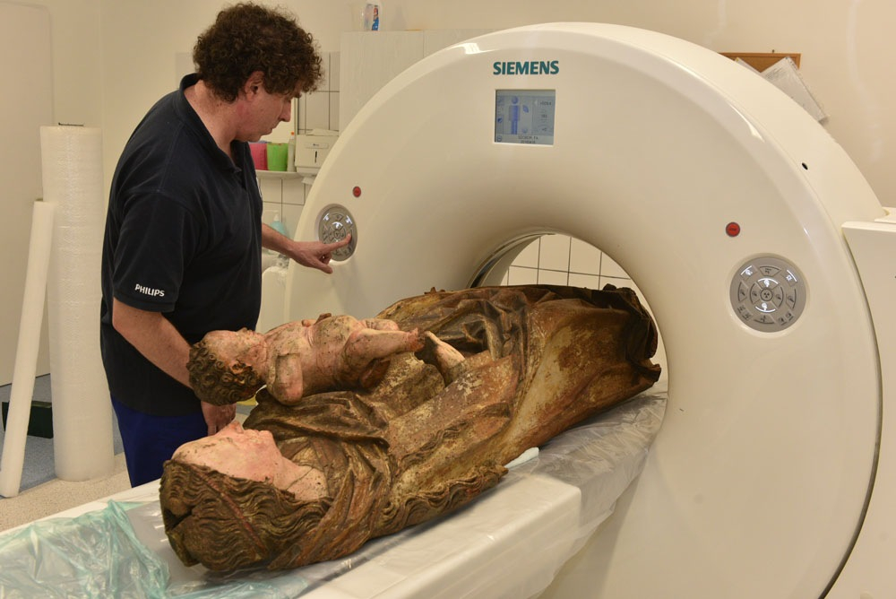 Kanász Gábor, a Vaszary Kolos kórház főigazgatója és egyben a Keresztény Múzeum baráti körének tagja olyan érdeklődéssel, lelkesedéssel és együttmüködéssel fogadta a kérést, amely minden nehézséget elhárított. Miután mind a kórház képviselői, mind a múzeumi szakemberek megbizonyosodtak róla, hogy a szobor súlya, méretei is lehetségessé teszik a munkát, és a szobor számára sem járhat a vizsgálat semmiféle veszéllyel, restaurátori és művészettörténészi jelenlét mellett, a kórház operátor munkatársának, Hanczik Csabának az irányításával megkezdődött a „páciens vizsgálata”, és igen érdekes információkra derített fényt.