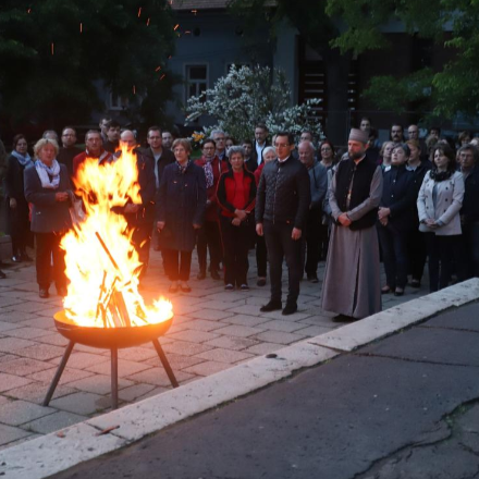 Ezután a főpásztor és Papp László polgármester együtt gyújtották meg a magyarság összetartozását jelképező tüzet.
