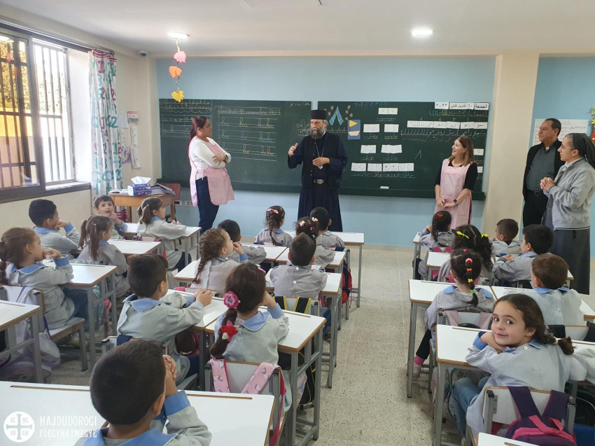 A dzsihadisták alagútjait feltöltötték, a folyosókon és tantermekben kamera, a portán és a kapunál biztonsági szolgálat vigyáz a tanárok és diákok épségére. A gyerekek az óvodától kezdve tanulnak franciául, felső tagozattól pedig angolul is – mondta Jihane nővér, az iskola lelkivezetője. May Bitar igazgatóasszony elmondta: a szír oktatási rendszerben a vallásbéke nevében nem működhetnek egyházi iskolák, sőt, egyházi személy nem lehet igazgató sem. Így a melkita iskola hivatalosan magániskola, ahol van tandíj – kivéve a leginkább rászorultaknak.