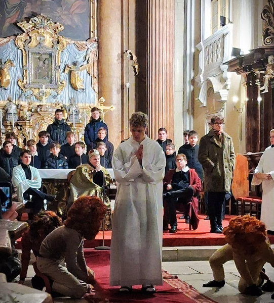 Az előadás előtt Mile Balázs első beosztott konzul szólt a közönséghez; majd Farkas Domonkos és Melegh Béla piarista tanárok a Dániel-játékot, annak zenei anyagát, illetve történetét ismertették.