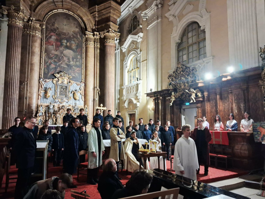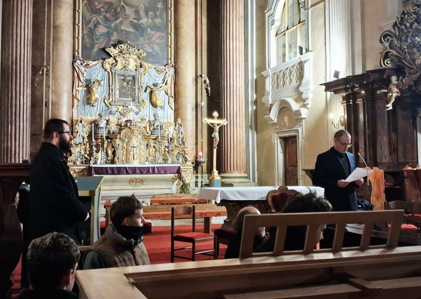 Molnár Lehel SchP egyetemi lelkész bevezetőjében a helyszínről, a piarista templomról elmondta: a kolozsvári jezsuiták építették, májusban ünnepelték felszentelésének 300. évfordulóját, és jövőre lesz 250 éve, hogy a piaristák átvették, folytatva az ifjúság nevelését. „Ez a zenei esemény lehet a 300 éve felszentelt akadémiai templom ünnepségeinek záróakkordja, és a 250 éve Kolozsvárra érkezett piaristák jubileumi évének nyitánya” – fogalmazott a piarista szerzetes.