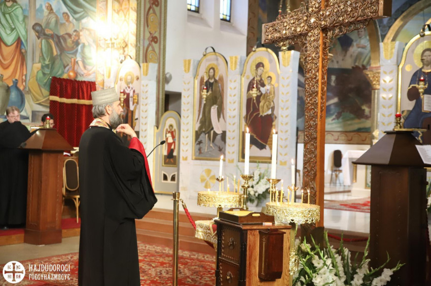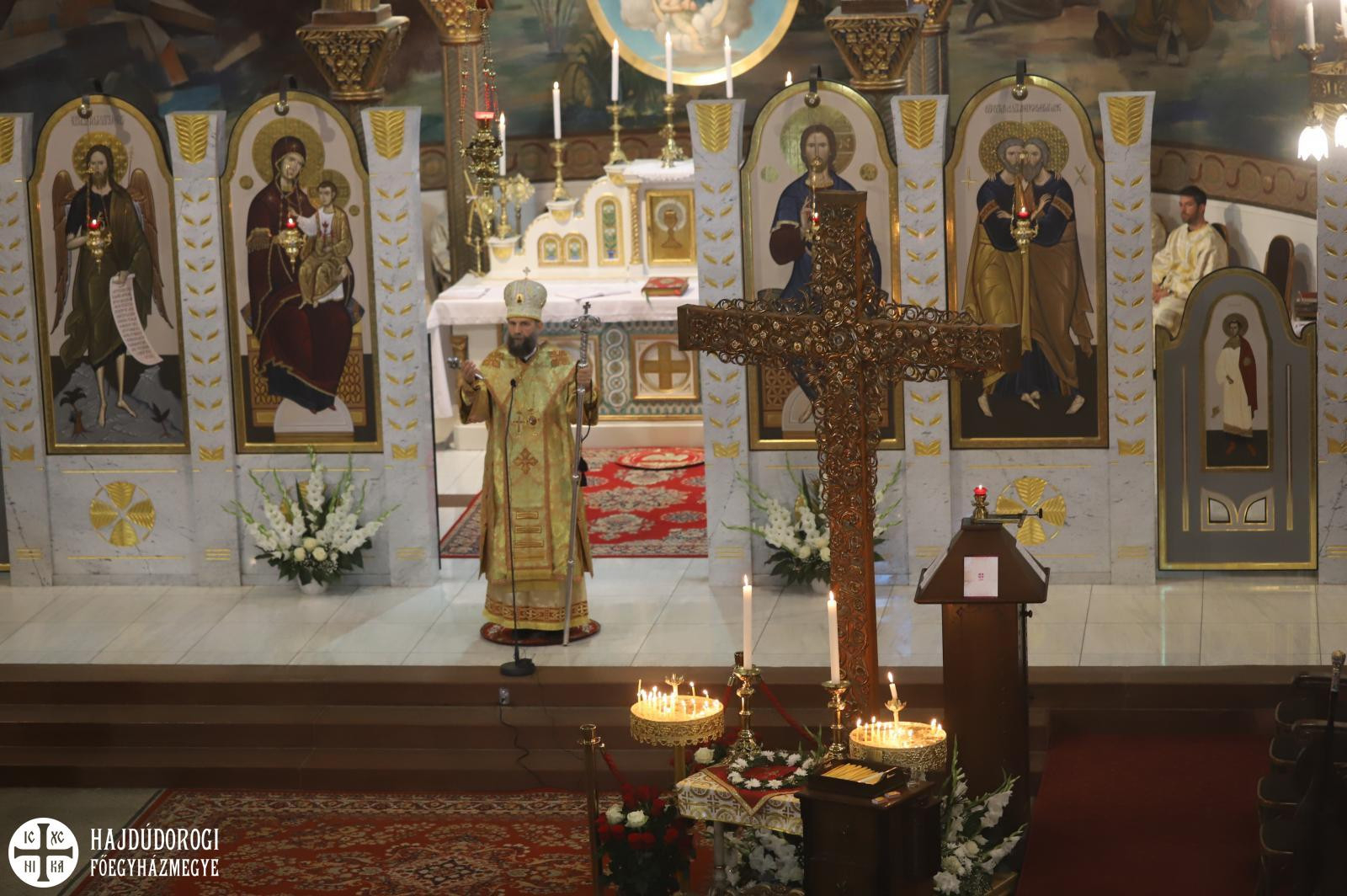 Vasárnap a kereszt tiszteletére Szent Liturgiát végeztek, melyen Kocsis Fülöp érsek-metropolita Máté evangéliuma alapján elmélkedett (Mt 22,34–40). Prédikációjában arról beszélt, hogy a mai magas kultúrájú népeknél sem egyértelmű, hogy a tízparancsolat között milyen hierarchia, ha úgy tetszik rend van. Hiszen a parancsok irányítják az életünket és nem mindegy, hogyan jönnek egymás után. Ezért teszi fel a farizeus az érdeklődő kérdést, ami évszázadok óta foglalkoztatja az embereket, hogy melyik a legfontosabb parancs. Ezzel próbára akarta tenni Jézust.