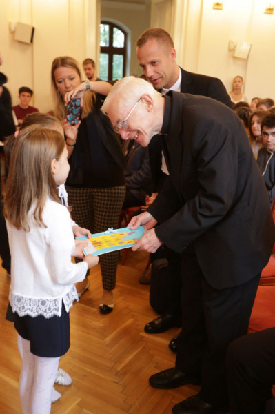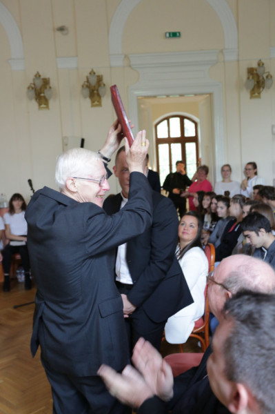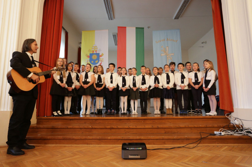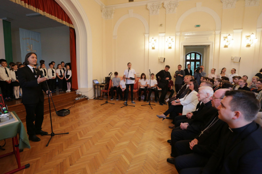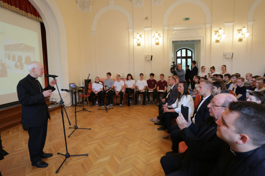 A szentmisét követően a nuncius a Szent József Gimnáziumba látogatott, ahol az angol tagozatos diákok köszöntötték őt. A találkozót a gyermekkórus előadása nyitotta meg, majd a diákok bemutatták az intézményt a pápa követének. Ezt követően a lányok kórusának műsora következett, melynek keretében elénekelték a Menny a földön című, saját szerzeményű dalukat. Az esemény végén a diákok egy ikonnal és rajzaik gyűjteményével ajándékozták meg a vendéget.
