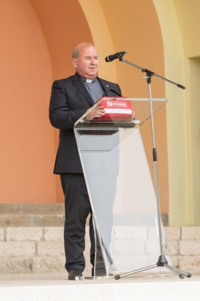 Az adományt a megújult máriagyűdi kegyhelyen bemutatott ünnepi szentmisét követően adta át Écsy Gábor, a Karitász országos igazgatója Rosner Zsolt plébánosnak.