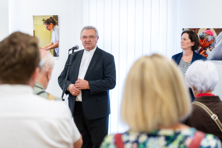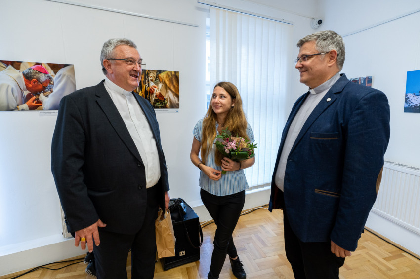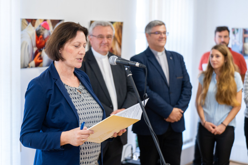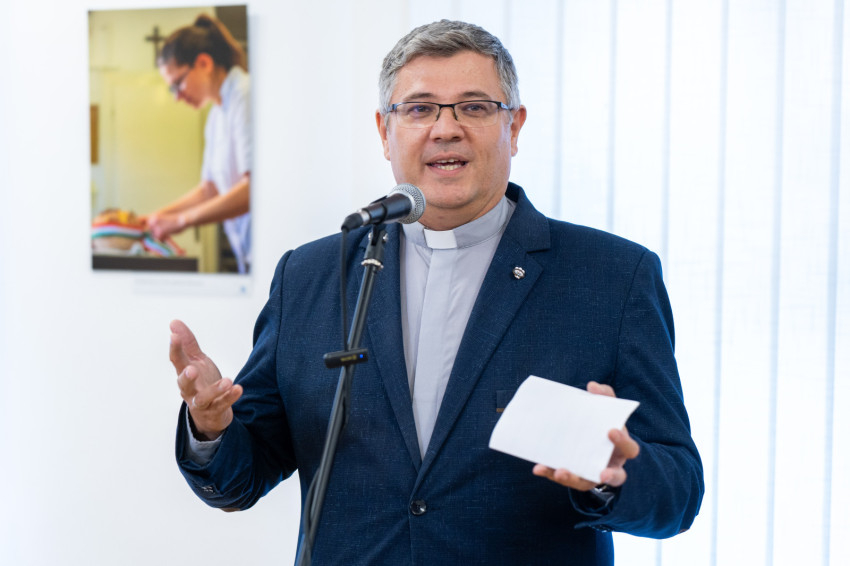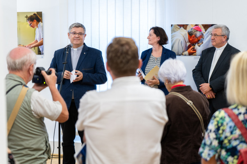 Kiemelte: „Jubileumi ünnepségre gyűltünk össze. Tíz éve, 2014 óta fényképekkel is szolgálja az olvasókat a Magyar Kurír katolikus hírportál. Ez a kiállítás időutazás, a két fotós, Merényi Zita és Lambert Attila jóvoltából. Tíz év munkájának csupán kis töredékét láthatjuk ezen a tárlaton, mely Esztergomból érkezett ide, Győrbe.”