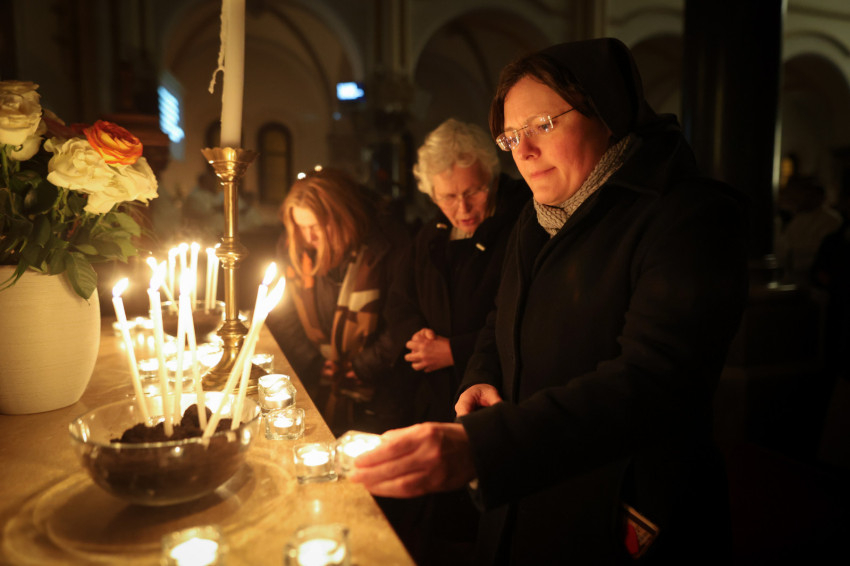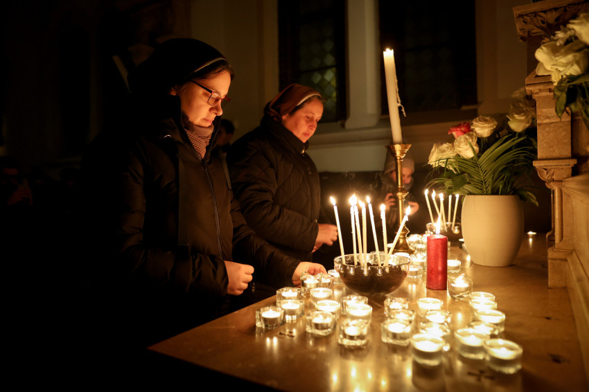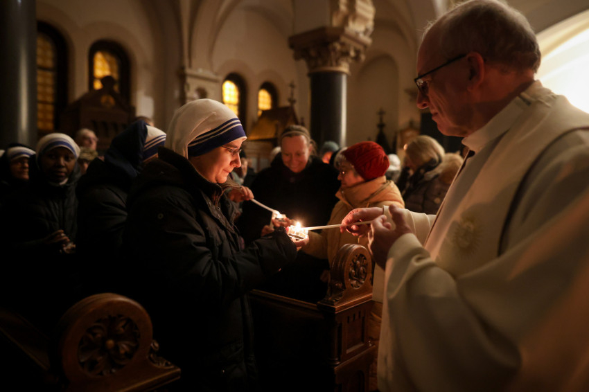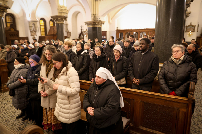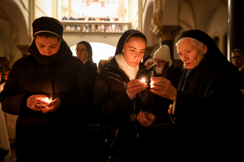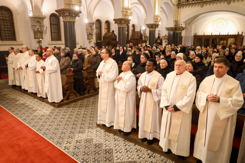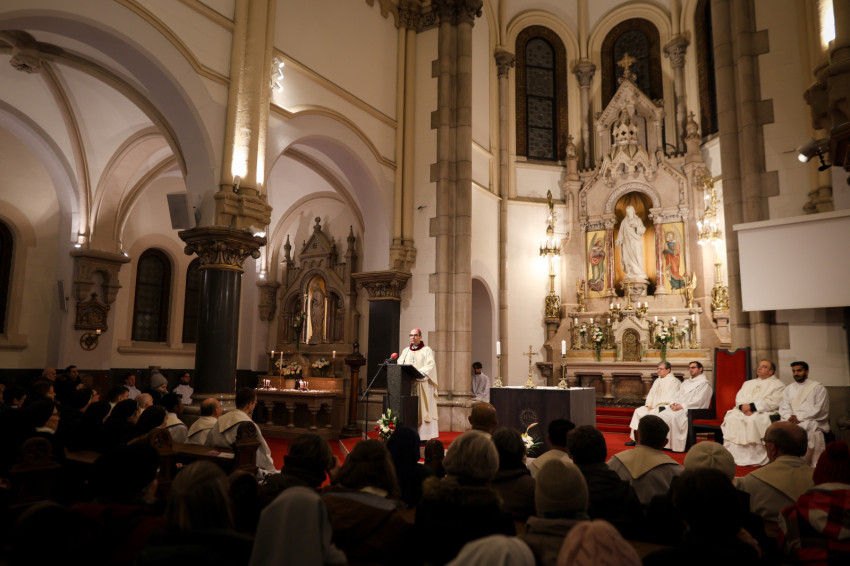 A szerzetesek találkozója a Jézus Szíve-templomban folytatódott, ami teljesen megtelt. Zsolozsmát imádkoztak, majd Székely János püspök mutatott be szentmisét. Ünnepélyes pillanat volt, amikor a szerzetesek égő gyertyákkal vonultak a Mária- és a Szent József-oltárhoz: gyertyák százai fejezték ki Krisztushoz tartozásukat, önátadásukat.