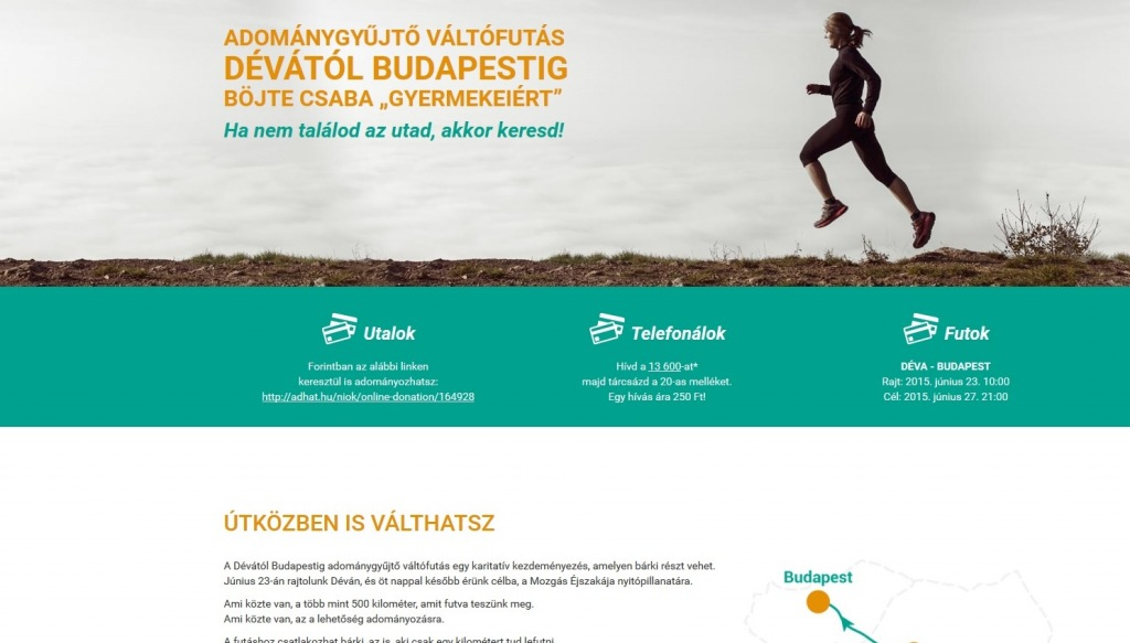 A váltófutás fő üzenete, hogy sportolni és adni jó! Egy telefonhívással 250 forintot lehet adományozni (a 13600-as szám 20-as mellékén keresztül), vagy tetszőleges összeget utalás formájában. Az utaláshoz kattintson ide.