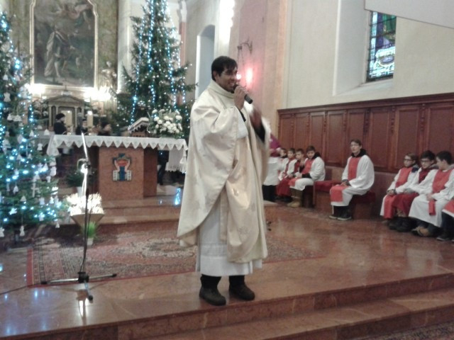 Az Indiában született káplán két éve él Magyarországon és szolgál Vasváron. Az ünnepélyes bevonulás után a lelkipásztor Isten legnagyobb ajándékaként köszöntötte a kis Jézust.