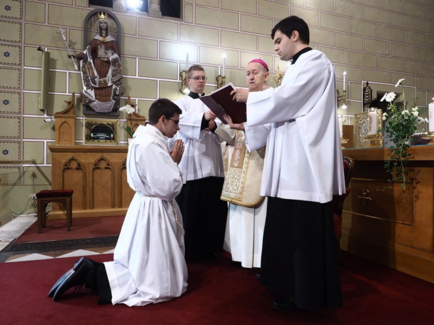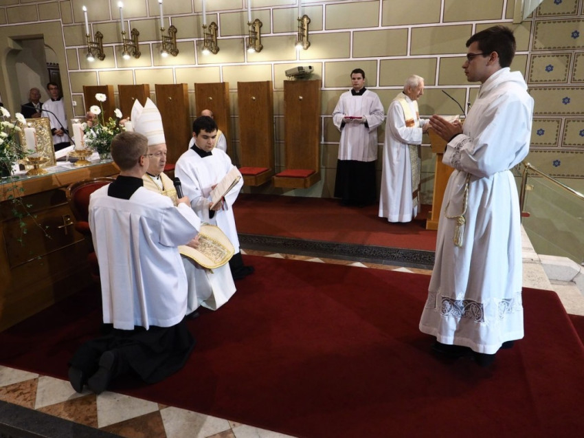 A szertartás kezdetén Varga István, a veszprémi Boldog Gizella Szeminárium rektora kérte fel a főpásztort, hogy szentelje diakónussá az akolitust. Ezt követően a szentelendő ígéretet tett feladata hűséges vállalására; a Mindenszentek litániája alatt leborult a földre, és a jelen lévő papokkal, valamint a szentelésre érkezett hívekkel és rokonokkal együtt kérték Isten szentjeinek közbenjárását.