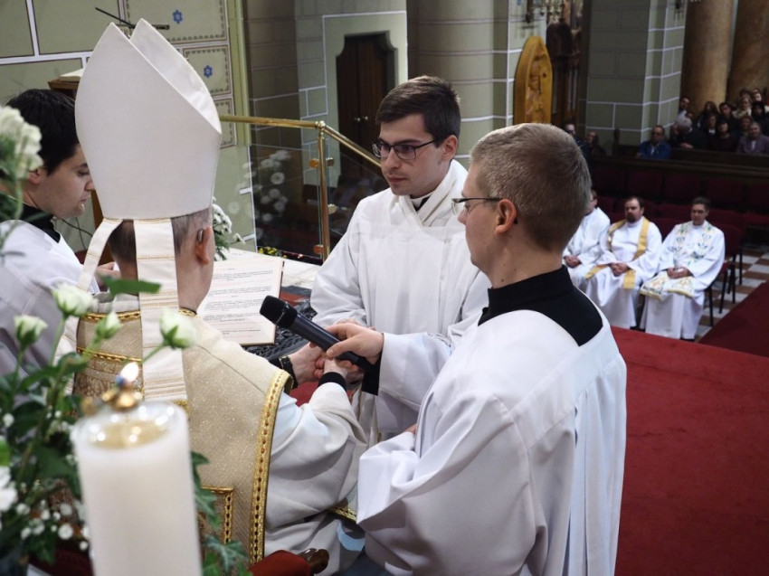 „Kislődön nevelkedtem, ahol meghatározó volt számomra a falu és a falusi emberek, valamint plébánosom, Markója László esperes vallásossága – mutatta be hivatásának kialakulását Kopácsi Máté. – Az esperes úr vezetett be a papi élet rejtelmeibe, és nagyon sok mindent hallottam tőle gyermekként arról, hogyan élte meg papi hivatását. Szerettem volna katolikus iskolában továbbtanulni, de először mégsem oda jelentkeztem, hanem egy szakközépiskolába, de végül mégis a Padányi Bíró Márton Római Katolikus gimnáziumban érettségiztem. Érettségi után rögtön kértem a felvételemet a Veszprémi Főegyházmegye papnövendékei közé. Miután érsek úr felvett, elkezdtem a tanulmányaimat a Veszprémi Érseki Hittudományi Főiskolán. Két év után érsek úr és rektor úr döntése alapján Freiburgban, Németországban folytattam tanulmányaimat. A szentelés után is oda fogok visszamenni, hogy befejezzem tanulmányaimat. Várhatóan 2020-ban szentelnek pappá.”