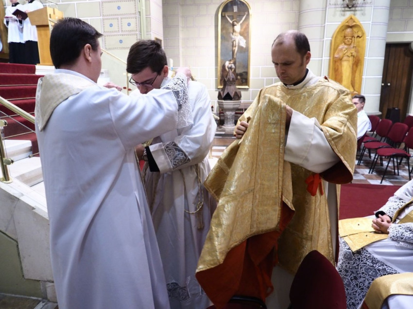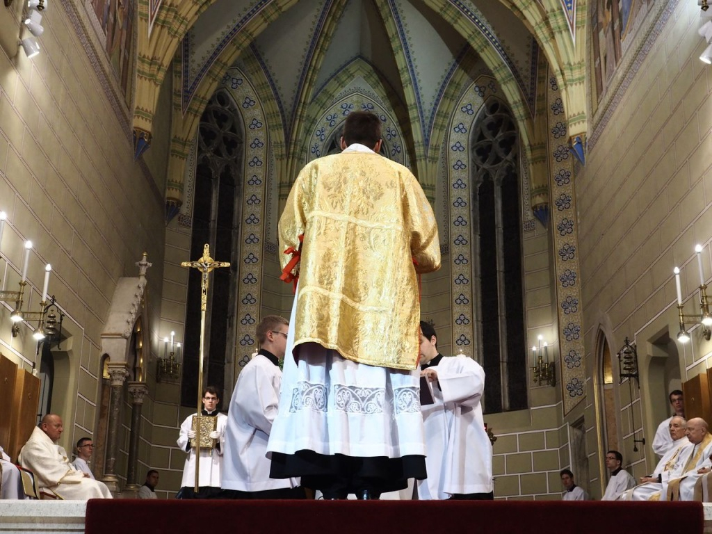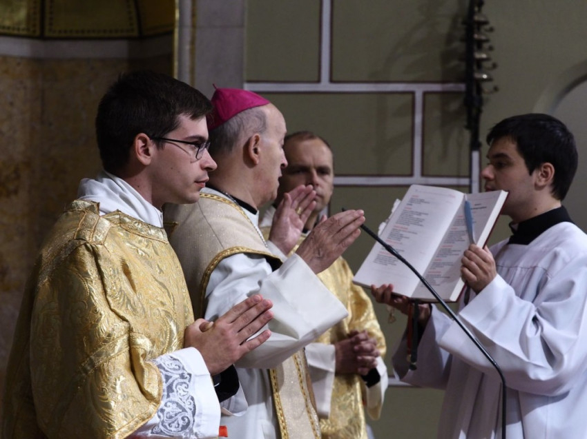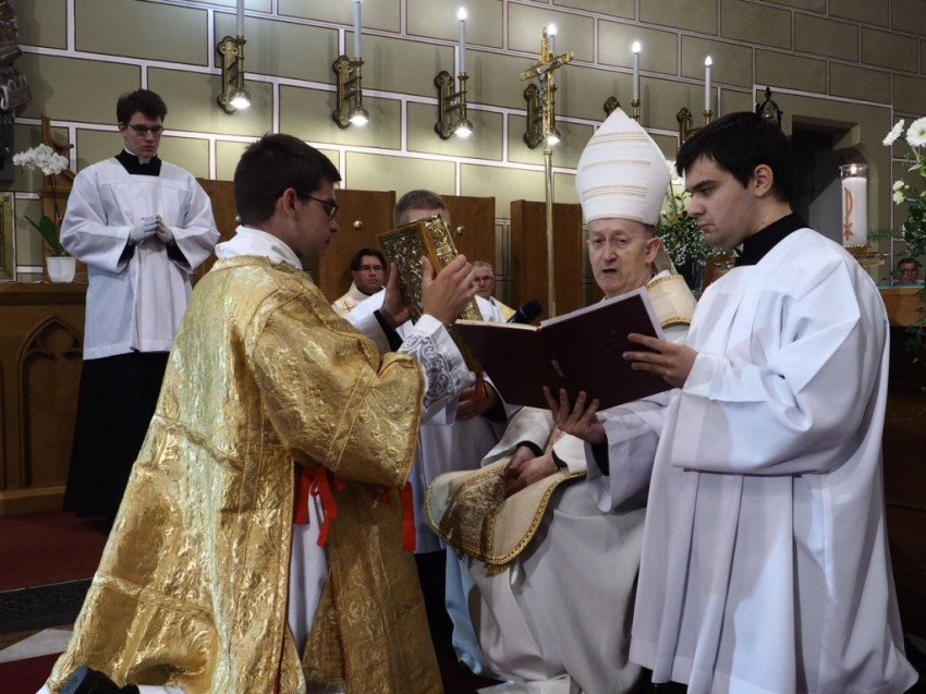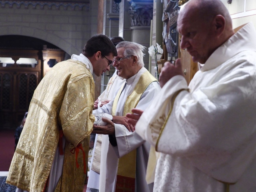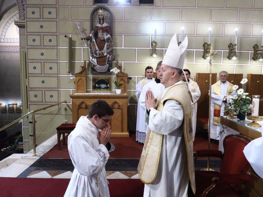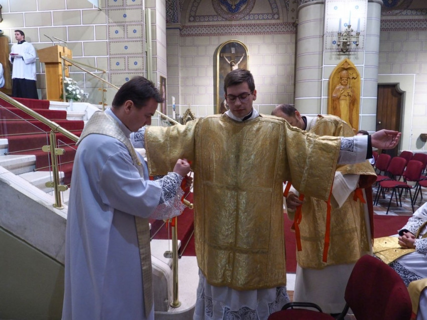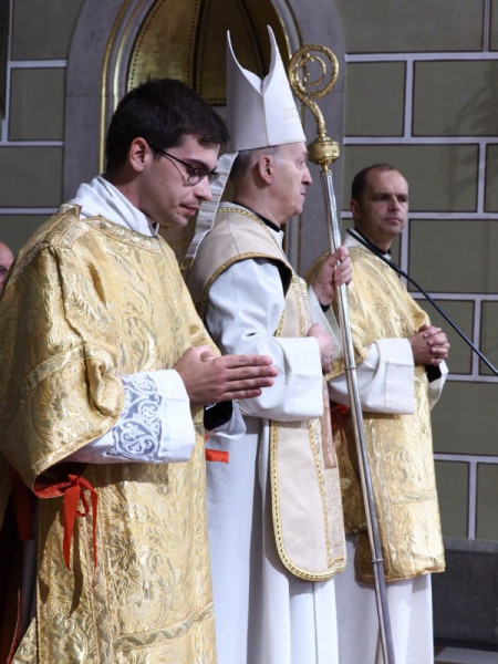 Az ünnepi szentmise folytatásában már az újonnan felszentelt diakónus volt Márfi Gyula segítségére a szentmise bemutatásában.