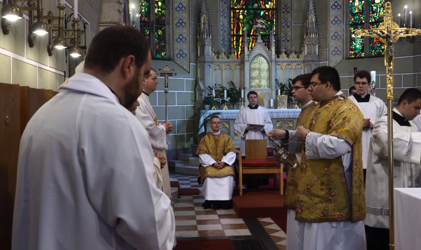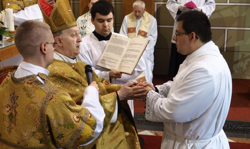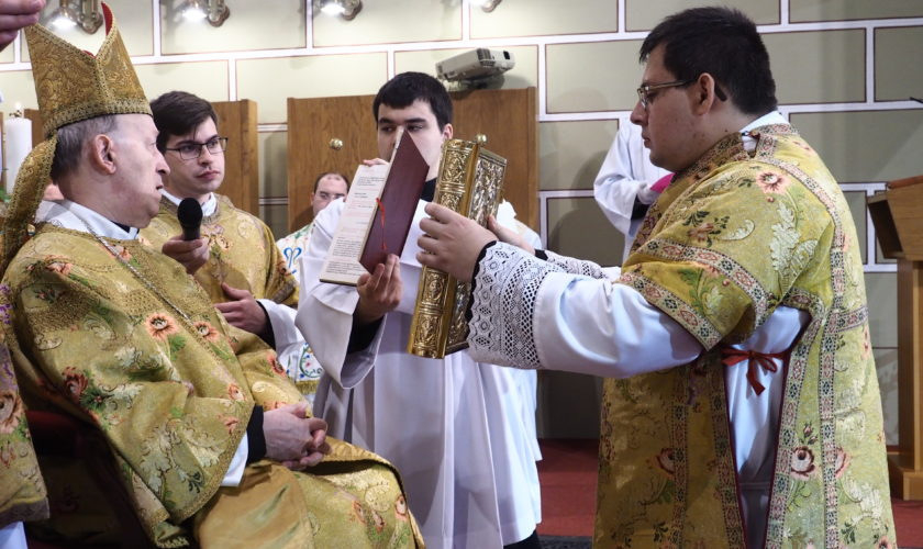Felszentelése után már az új diakónus volt a főpásztor segítségére a szentmise bemutatásában.
