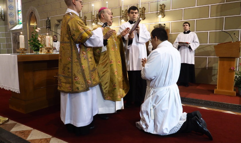 A szertartás kezdetén Varga István, a szeminárium rektora felkérte Márfi Gyula veszprémi érseket, hogy szentelje diakónussá az akolitust.